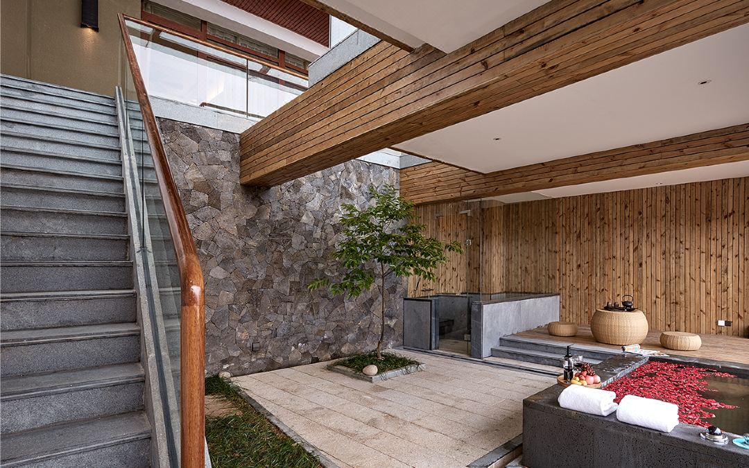 莲云谷温泉是温州目前唯一的温泉文化主题酒店。酒店依山依峡傍水而建,拥有广阔视野的峡谷景观,秉承田园自然生态、欢乐舒心、养生健体的产品设计与服务理念,结合泰顺古民居及民俗文化,巧妙地将莲、竹、陶、木等中国写意和诗意植入其中,主体建筑融合汉唐风格,区内装饰结合泰顺古民居风格的悬梁元素和畲族文化等古朴元素,室外温泉结合泰顺廊桥、碇步元素,大气与婉约并存,形成了独特的新汉唐建筑风格。莲云谷温泉是以天然氡温泉的养生休闲功能为核心,集自然山水和峡谷观光、乡村旅游度假、户外健身运动等特色综合性的养生休闲度假商务温泉酒店。