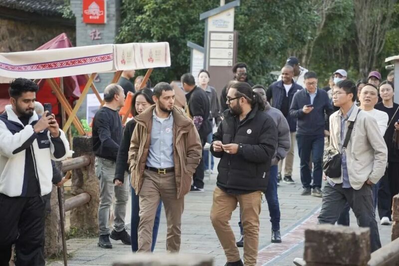 外籍友人首先来到具有浓郁畲族风情的西坑镇让川村,沉浸式体验拦路歌、竹竿舞、捣年糕、摇锅等畲族传统民俗活动,之后并参访百丈漈景区。多位外国友人举起手机,通过他们的个人社交平台,以“外眼”第一视角,向世界实时分享古老的村落、独特的习俗与壮丽的山水,将文成的文旅资源以最直接、最生动的方式推向世界,实现了从“请进来”体验到“走出去”宣介的完美融合。