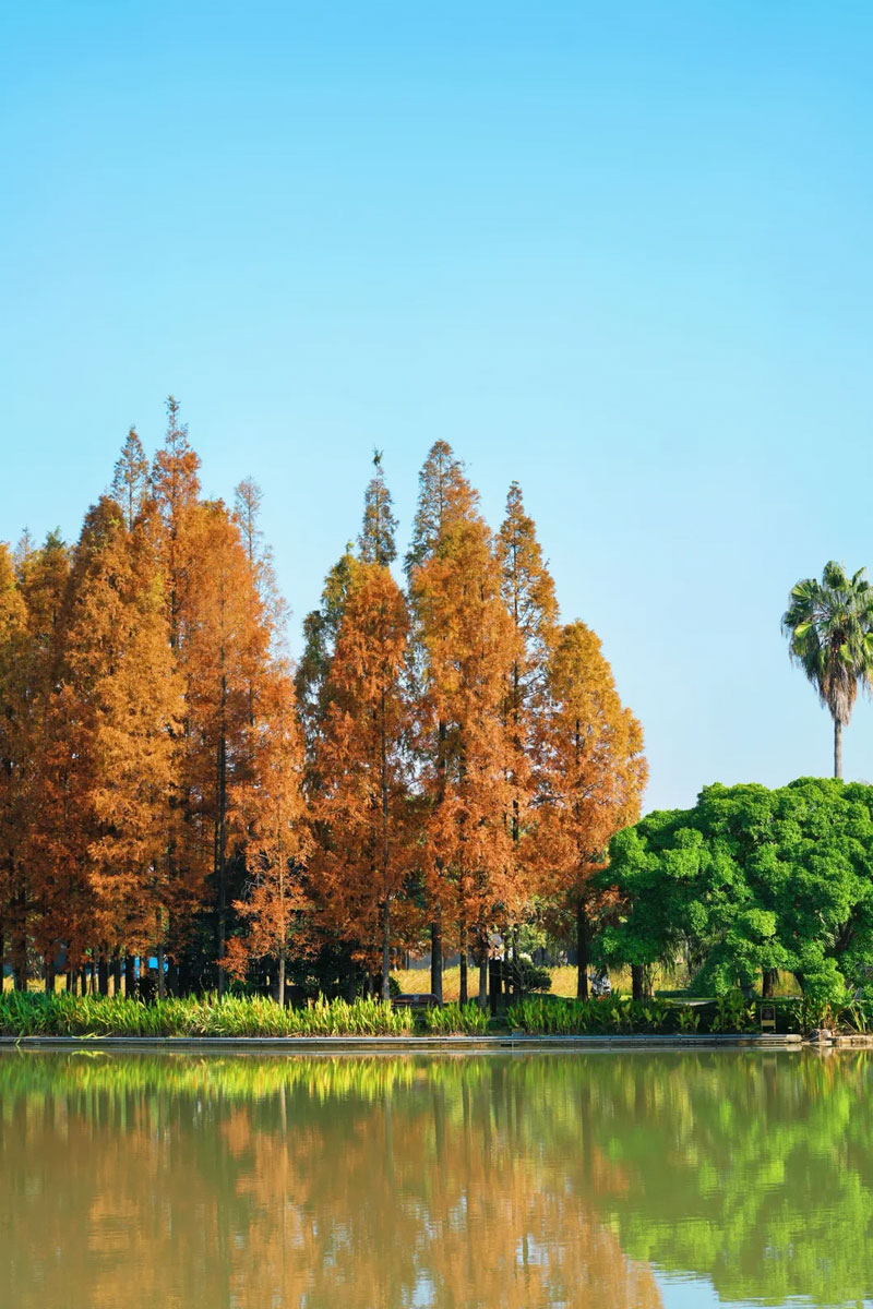 冬日里,乐清清和公园沿湖的红杉林成为新主角。