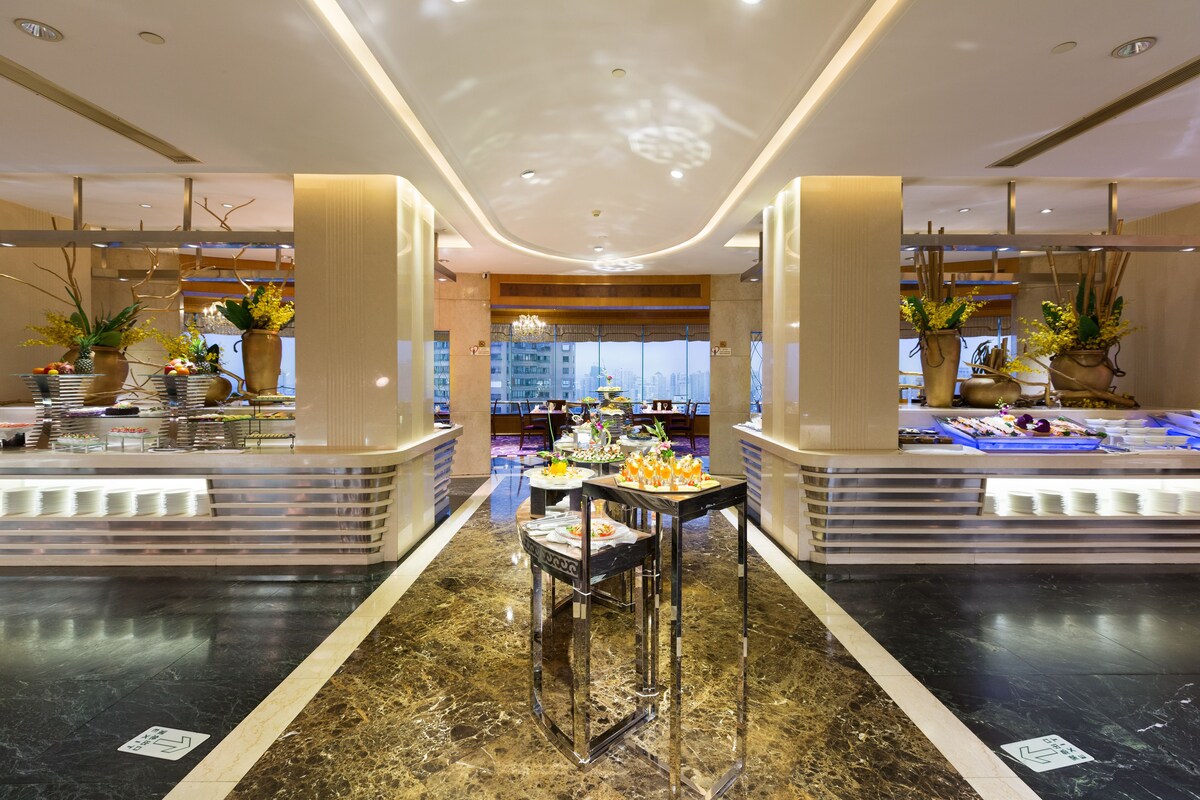 旋转餐厅:位于25F,可供350人同时用餐并观光,全天侯提供中西式美味自助餐;