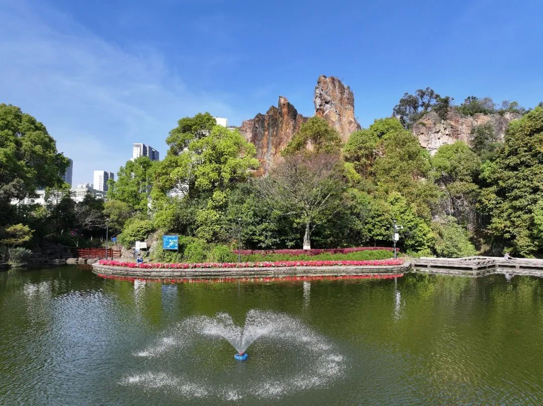 绣山公园建于2001年,南邻温州市行政管理中心,北接锦绣路,公园占地面积8.57公顷,是一处集青山、碧水、绿荫、草地为一体的自然山水休闲公园。公园充分利用原球山留下的三座小山体,改造及重构山体,通过自然曲折的水面,环绕连接三座山体,形成“一池三山”的古代江南园林布局。园内的绿化以草坪为主,乡土树种为点缀,增以杜鹃、千层金、美国红枫等季节性变化植物,并设置了花境和竹林区,注重花色花期和常绿落叶树种的搭配,使得整个公园四季如春。