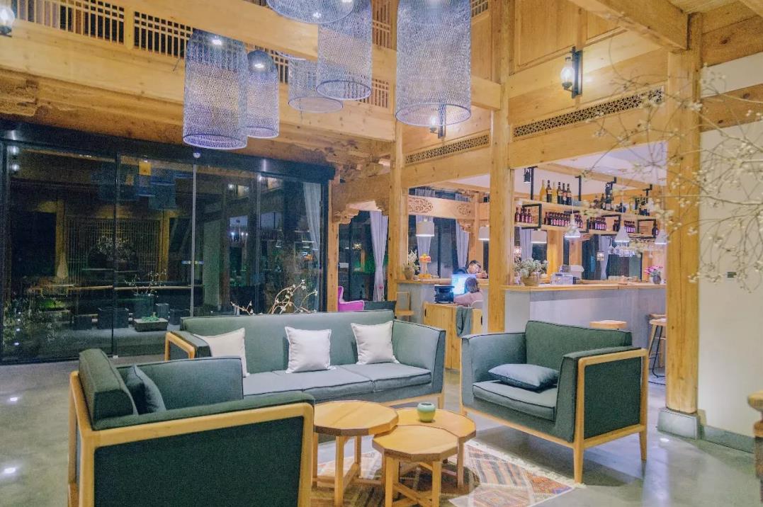 整个民宿保留了老建筑的滋味,又融入了当代时尚的元素,虽不奢华,却很讲究,有一种复古又略带俏皮感的畲乡风情。使用纯木搭建的建筑,与四周群山融为一体,天然而自然,一切都更贴近生命的本源。一脚踏入月蓝舍便有一种眼前一亮的感觉,初入庭院,只见院内有潺潺的小溪、高高的香樟树 、沙滩、躺椅,仿佛从山林跨越到了东南亚热带雨林。