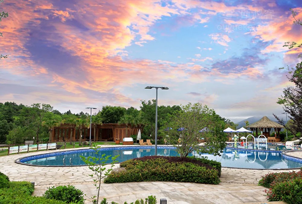 室外多个不同主题的汤池散落于山体之中。室内温泉设有理疗功能齐全的干蒸浴、水晶能量浴、玉石药蒸浴、冰室、韩式汗蒸浴等多个个泡疗池。二楼设有儿童专属区、阅读区、文化休闲大厅、游艺厅及剧院。