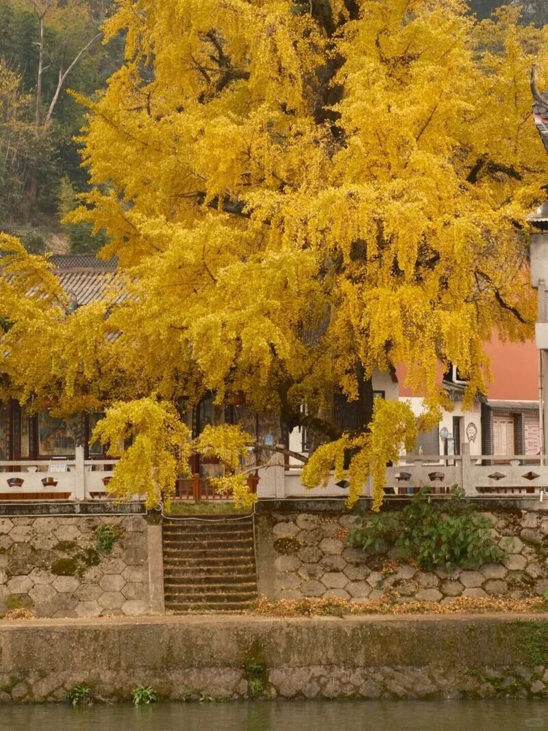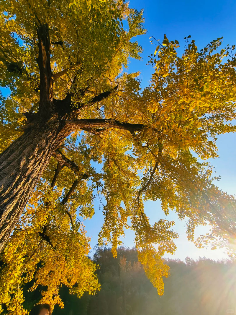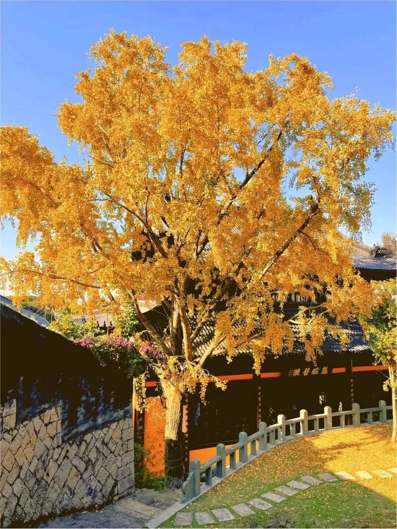 数百年的岁月,在实际寺的枝头静静酝酿。待到北风相约,这一树古银杏便不疾不徐地,展露出它惊心动魄的变装。