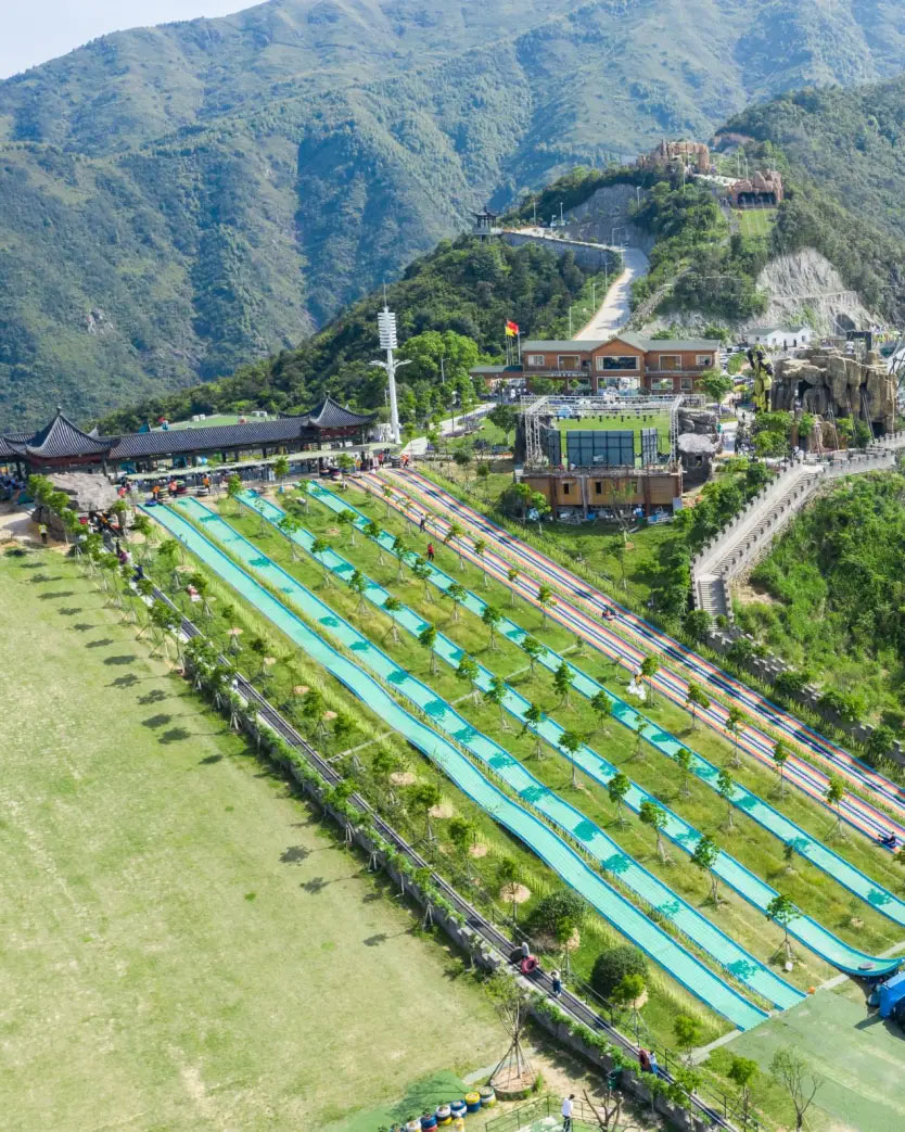 园区是集农业采摘、登山健身、拓展体育运动、竞技游乐和休闲度假于一体的时尚观光园。内有健身步道、度假屋、餐厅、竹林氧吧等森林康养活动,也有各类果园、茶园、露营台等休闲娱乐,还有滑草车、滑草鞋、荷兰雪圈、碰碰球、玻璃吊桥、真人CS、拓展等时尚运动,打造以体育运动与农林休闲相结合的格局。
